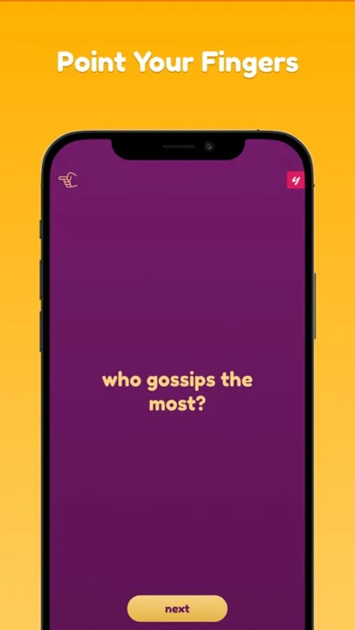 Get a bunch of friends gathered. The app will display one question at the time. Everybody in the group points at the person that they believe fits the description best.
