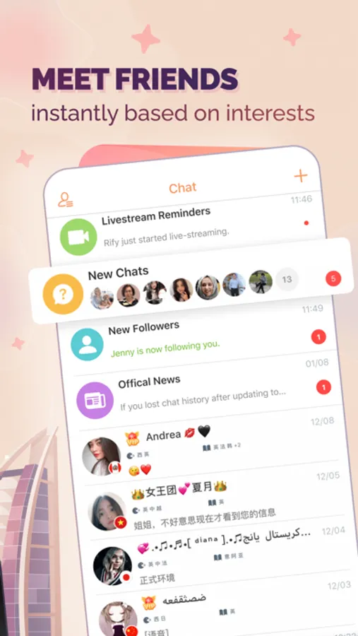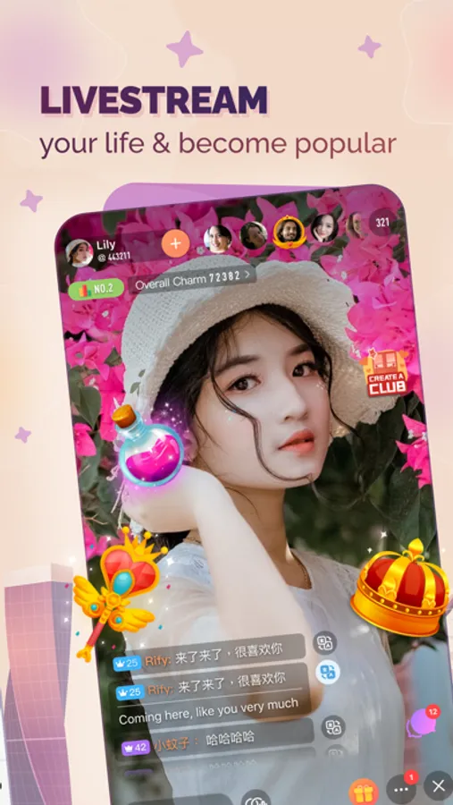 You can chat with people globally whenever you want, seek a relationship, and watch livestreams.