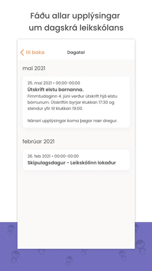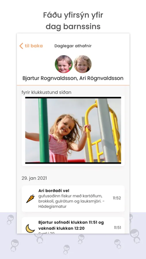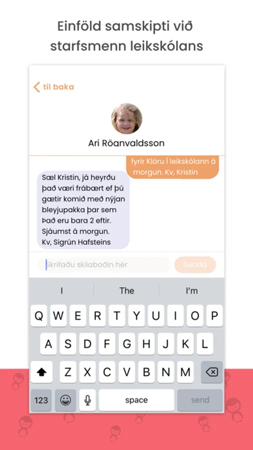 Appið er fyrir foreldra leikskólabarna og kennara. Appið auðveldar yfirsýn yfir dagskrá barnsins í skólanum. Þar birtist matseðill vikunnar, dagatal skólans og myndir af barninu í starfi og leik. Kennarar nota appið til að skrá viðveru barna í skólanum, senda foreldrum bein skilaboð, taka myndir af börnunum í skólanum og merkja hvaða börn birtast á myndinni. Foreldrar nota appið til að skrá barn veikt eða í fríi, til að senda skilaboð til kennara og til að skoða myndir af barninu. Þegar kennari tekur mynd með appinu og merkir þá fer myndin beint í app foreldra.
