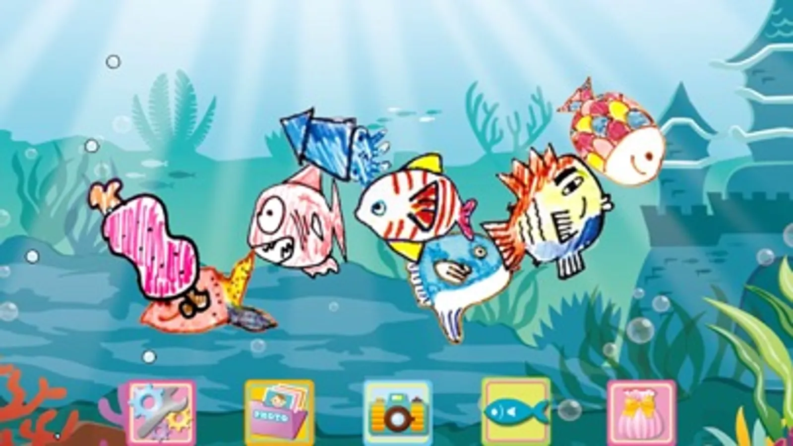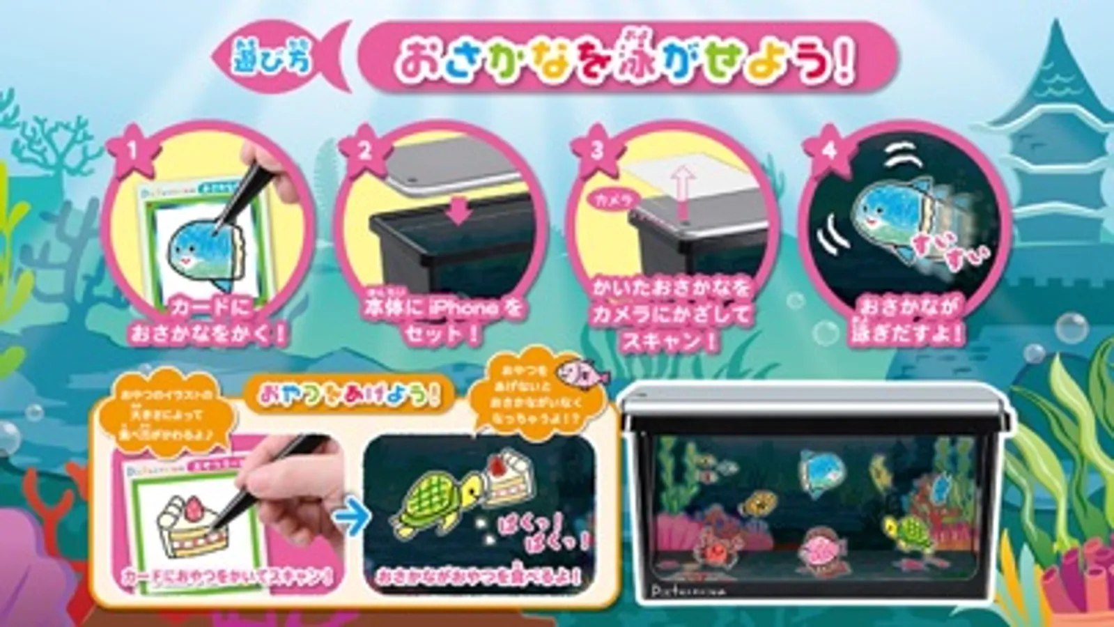 1. Draw a fish on the "fish card", and scan it with the iPhone camera.