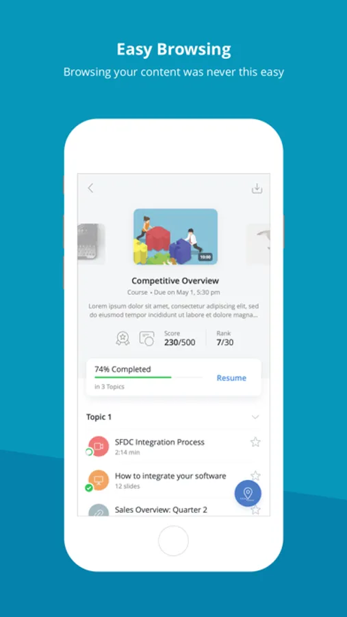 Mindtickle enables sales enablement managers, sales managers, and trainers to share track-able files like videos, slides, documents, audio files, etc., packaged in the form of lightweight and mobile-friendly 'Quick Updates.'