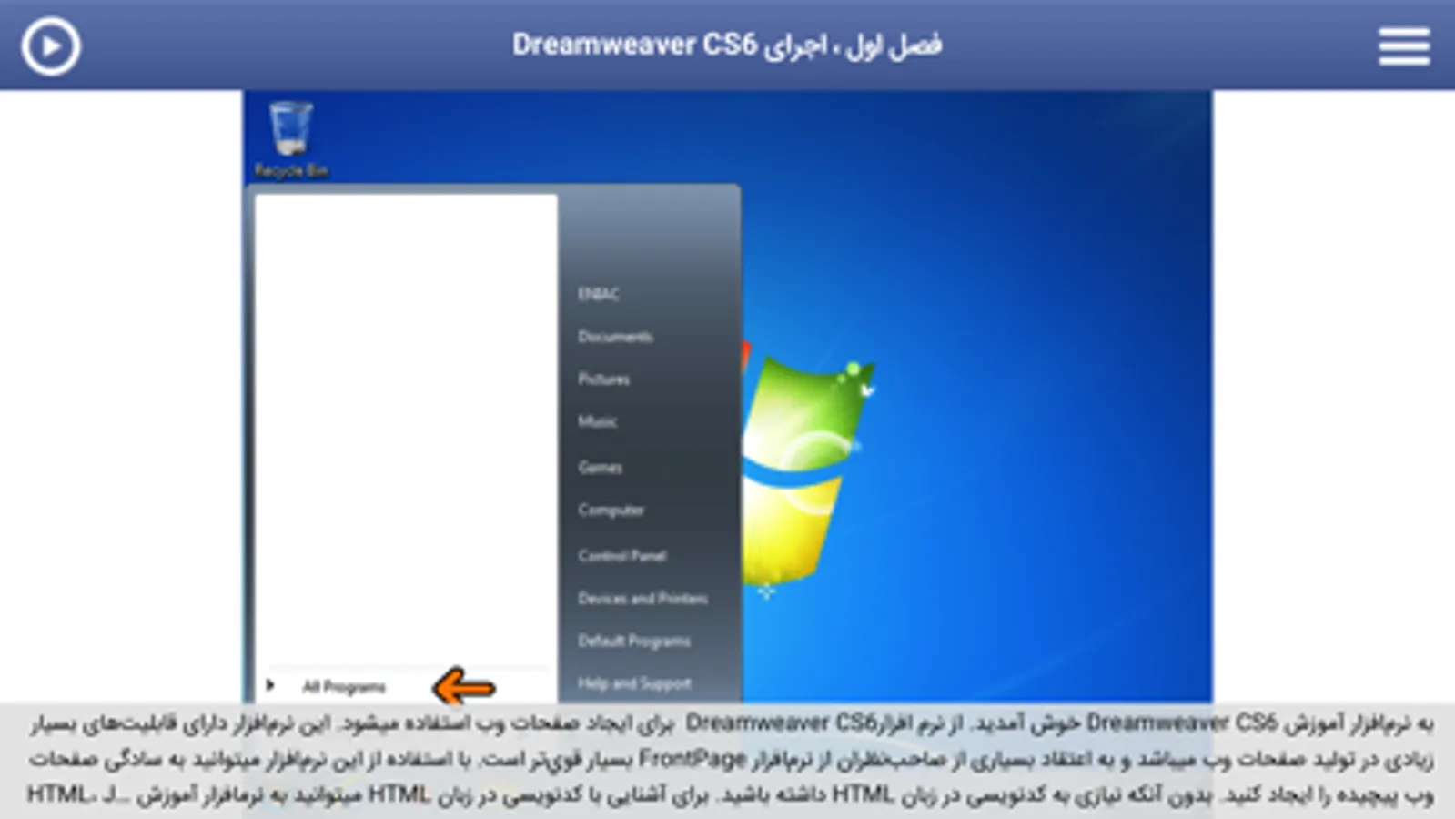 به نرم افزار آموزش Dreamweaver CS6 خوش آمدید. از نرم افزار Dreamweaver CS6 برای ایجاد صفحات وب استفاده میشود. این نرم افزار دارای قابلیتهای بسیار زیادی در تولید صفحات وب میباشد و به اعتقاد بسیاری از صاحب نظران از نرمافزار FrontPage بسیار قويتر است. با استفاده از این نرم افزار میتوانید به سادگی صفحات وب پیچیده را ایجاد کنید. بدون آنکه نیازی به کدنویسی در زبان HTML داشته باشید. برای آشنایی با کدنویسی در زبان HTML میتوانید به نرم افزار آموزش HTML5 & CSS3 مراجعه کنید.