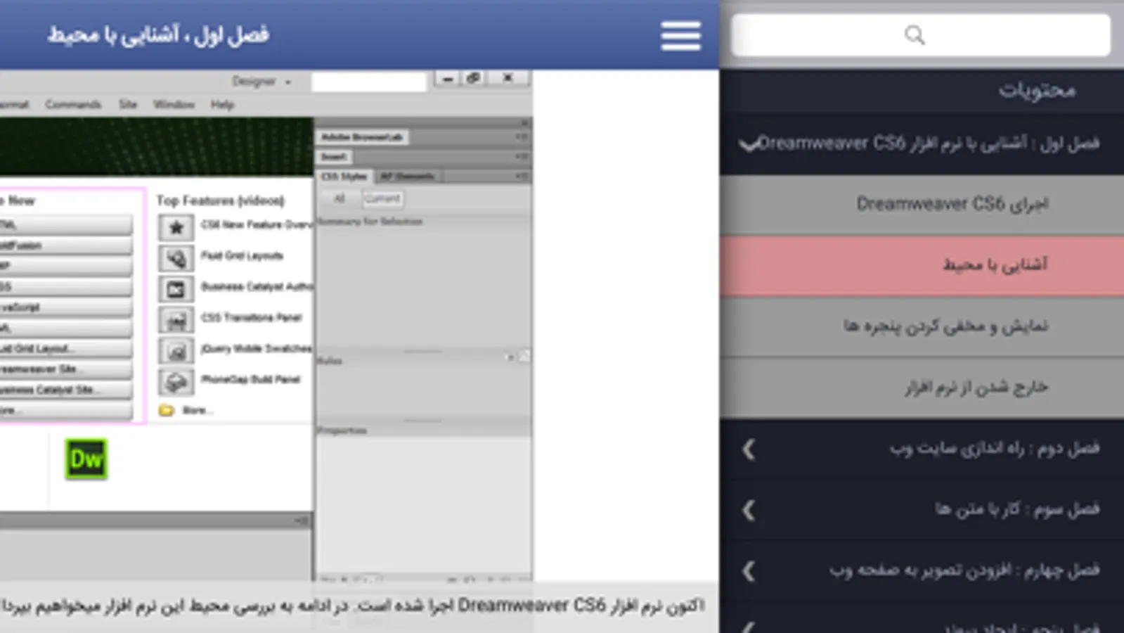 فصل اول : آشنایی با نرم افزار Dreamweaver CS6 ( رایگان )