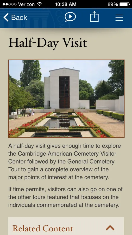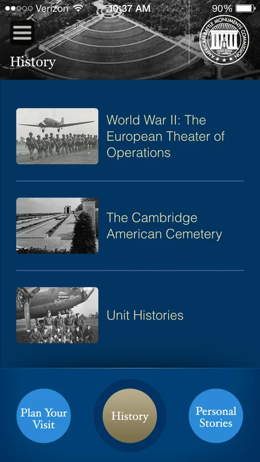 Explore Cambridge American Cemetery, where 3,812 Americans that gave their lives in World War II are buried. American armed forces used Great Britain as a base of operations during the war, further solidifying the friendship and alliance between the two nations. Many buried at the cemetery died during the Battle of the Atlantic—the Allied effort to secure routes and shipping lanes, and during the Strategic Bombing Campaign—the Allied effort to destroy German infrastructure and hinder military operations. Allied forces changed the course of world history. With this official Cambridge American Cemetery app as your personal tour guide, you can learn the stories of the Americans buried here, explore the cemetery, understand the U.S. military’s role in World War II, and much more. Use the app at the cemetery, or an ocean away. You don’t have to be in England to learn about this iconic World War II site.