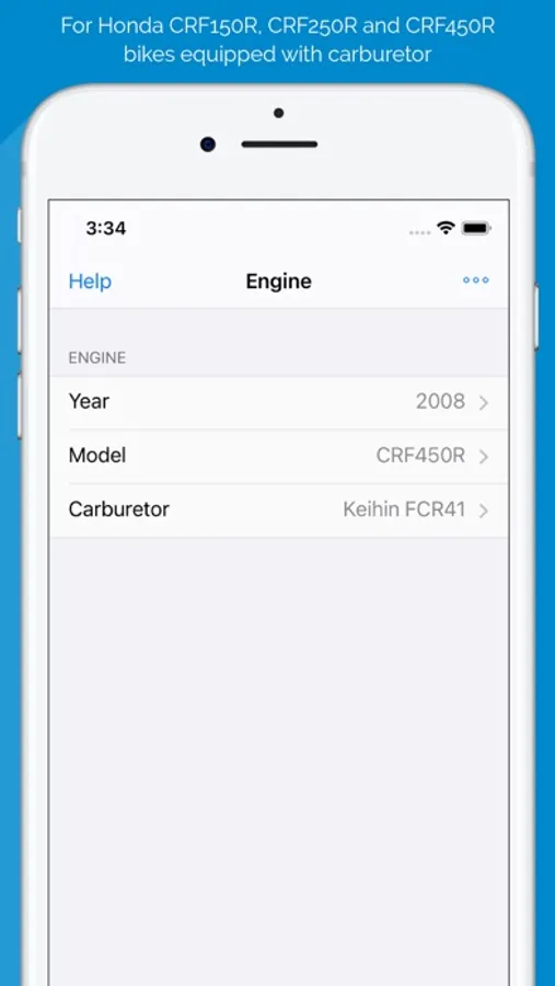 This app will help you configure the carb of your 2-strokes Honda CRF bike (CRF 150 R, CRF 250 R, CRF 450 R) to improve its performance. Using temperature, altitude, humidity, atmospheric pressure and oil-mix ratio, the app will show you a recommendation about jetting to your specific bike, so it can be useful to get a spot-on configuration and adapt it to the weather changes.