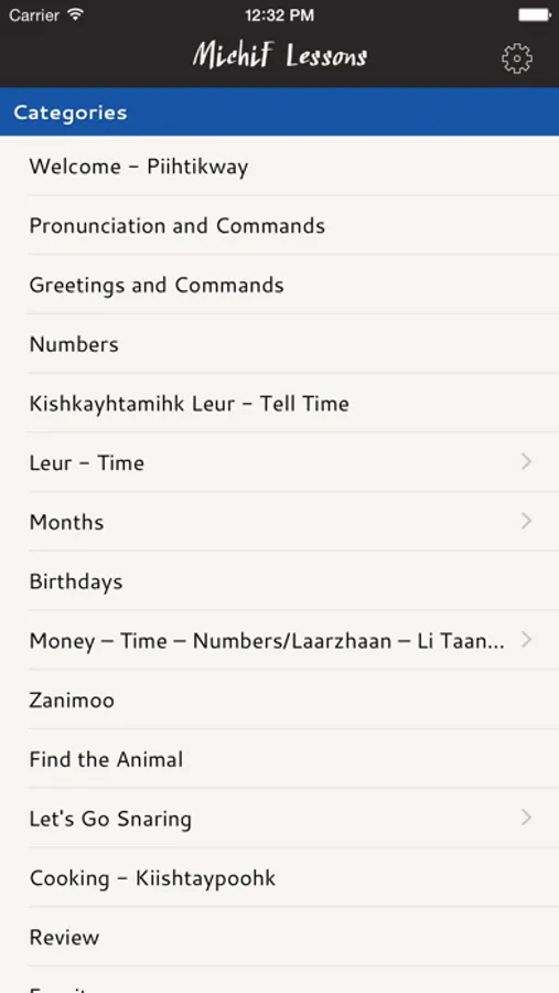 Michif Lessons contains over 60 exercises to learn over 1000 Michif words. Categories range from Numbers, Months, Animals, Weather, the Body, Love, and more! Michif specialist Norman Fleury provided all of the translations, as well as the audio narrations that will help users pronounce the Michif terms correctly. Michif Lessons was developed by the Gabriel Dumont Institute and the app was created by Media Access and Production (eMAP), University of Saskatchewan.