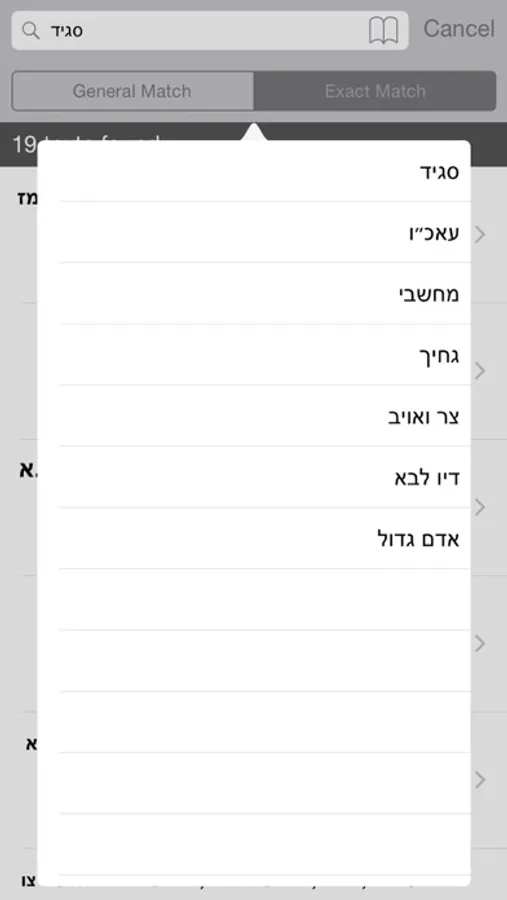 * חיפוש עפ״י התאמה כללית של מילים או התאמה מדויקת