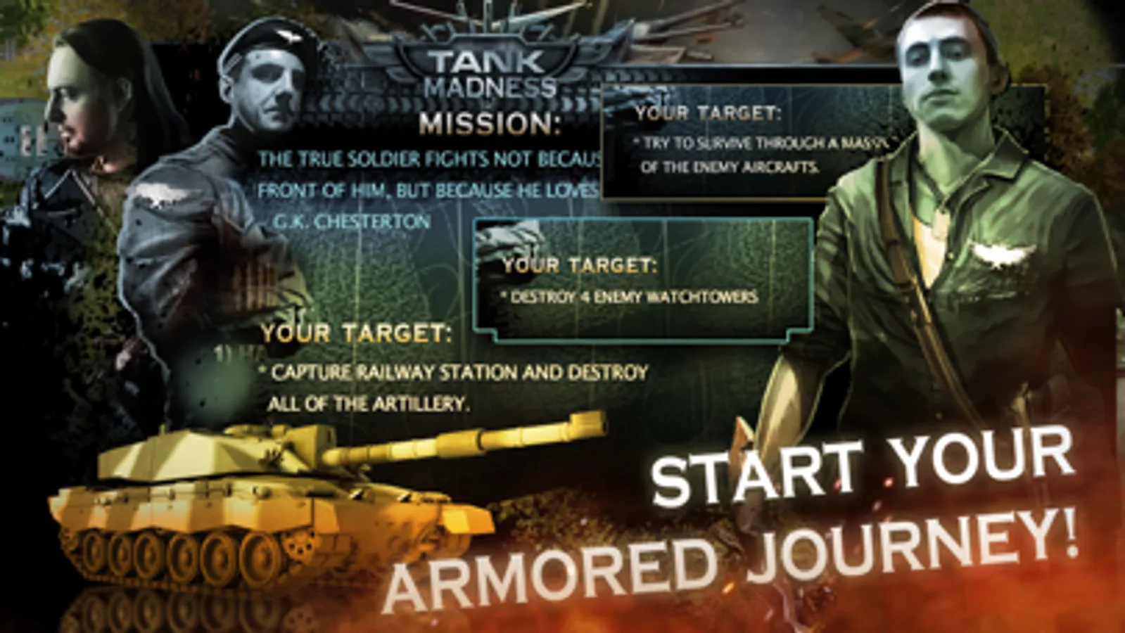 Tank Madness Blitz is an unique game combining the action and tactics genres. Full of enthralling missions and quests with different ways to get victory. Use tanks, aircraft, cannons, artillery etc to defeat your enemies.