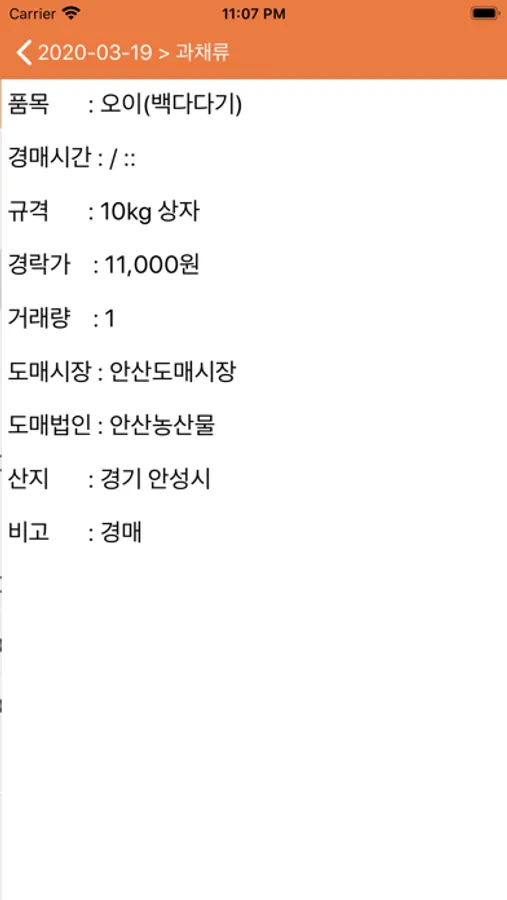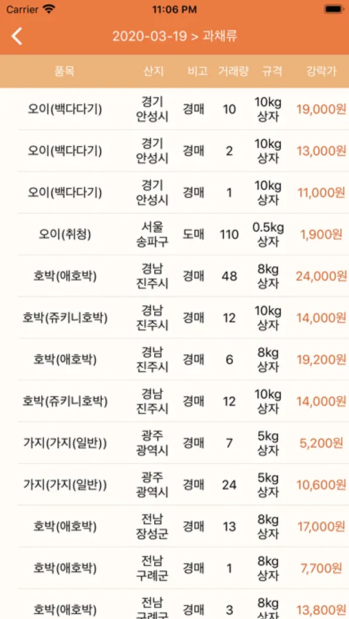 전국 도매시장의 경매 정보를 검색 할 수 있습니다.