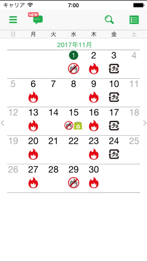 収集日変更のお知らせやイベント情報などを確認することができます。