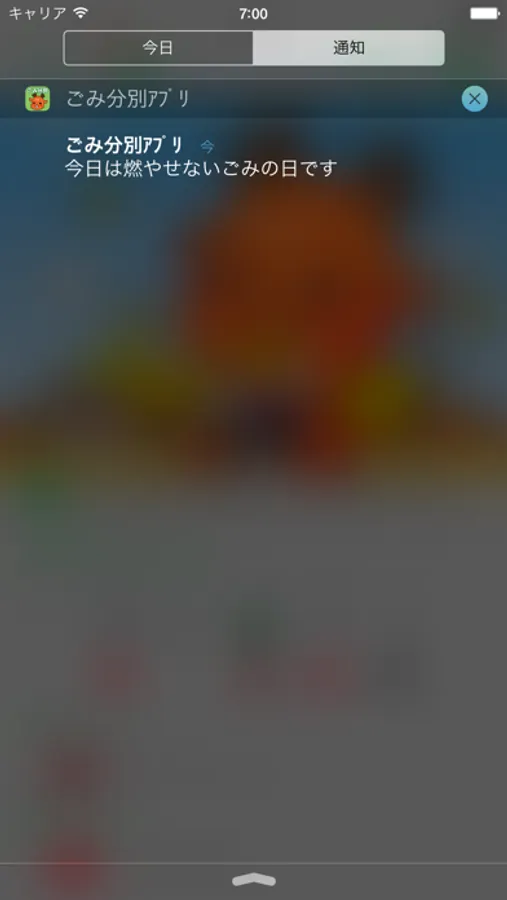 収集予定のごみ種別を前日と当日にアラートでお知らせします。時間は自由に設定することができます。