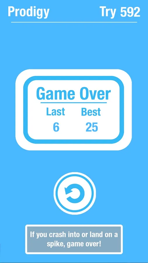 Your goal: Score as many points as possible by jumping over spikes that are trying to kill you. If you touch a spike, the game is over.