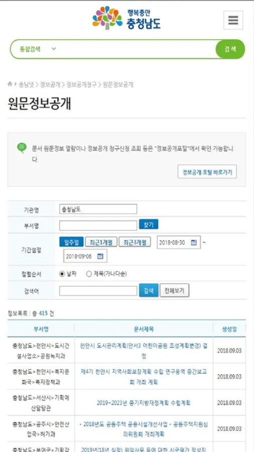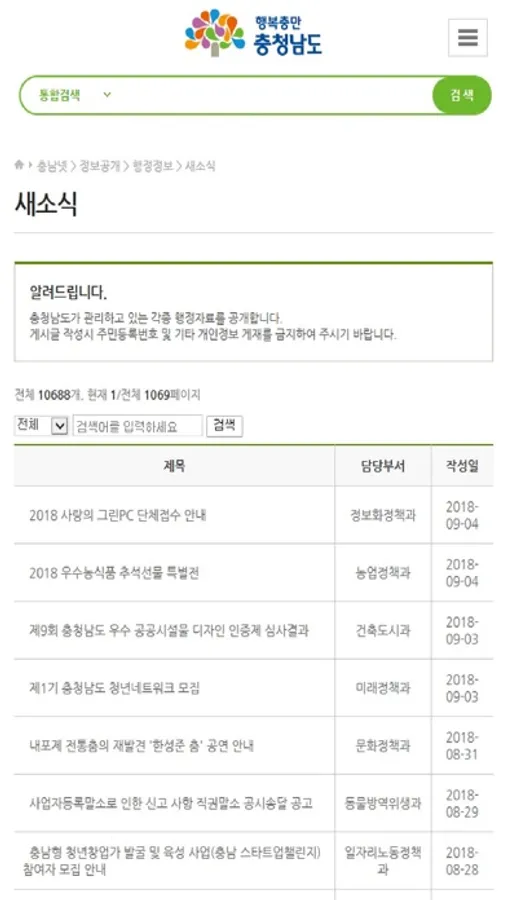 1. 충남소식 : 주요기사, 인기기사, 도민리포터기사, 포토기사 등의 소식을 제공합니다.