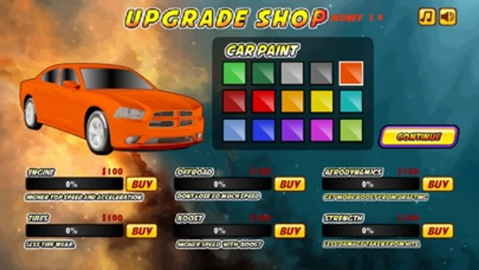 - Speed, Acceleration, Brake and Handling can be improved by updating car level