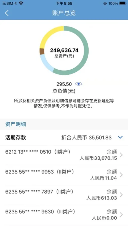 【贴心的账户总览】资产分布、定期存款、已购理财等一目了然,指点之间的每一分收支,都值得在乎,为您做到资产情况随时“掌”握,资金管理“芯”中有数。