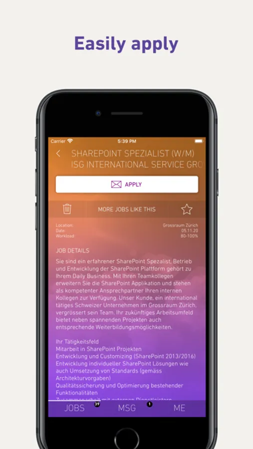 All jobs in Switzerland in one app. No searching required. Get the app and receive suitable job offers.