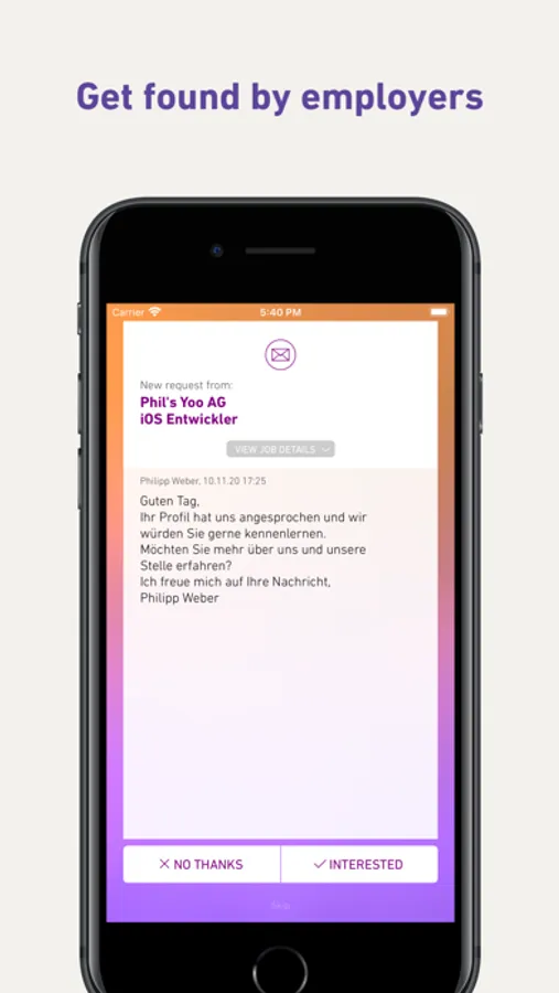 - Get job offers from interested companies. You decide, if you want to start talking or decline their request to connect and stay anonymous.
