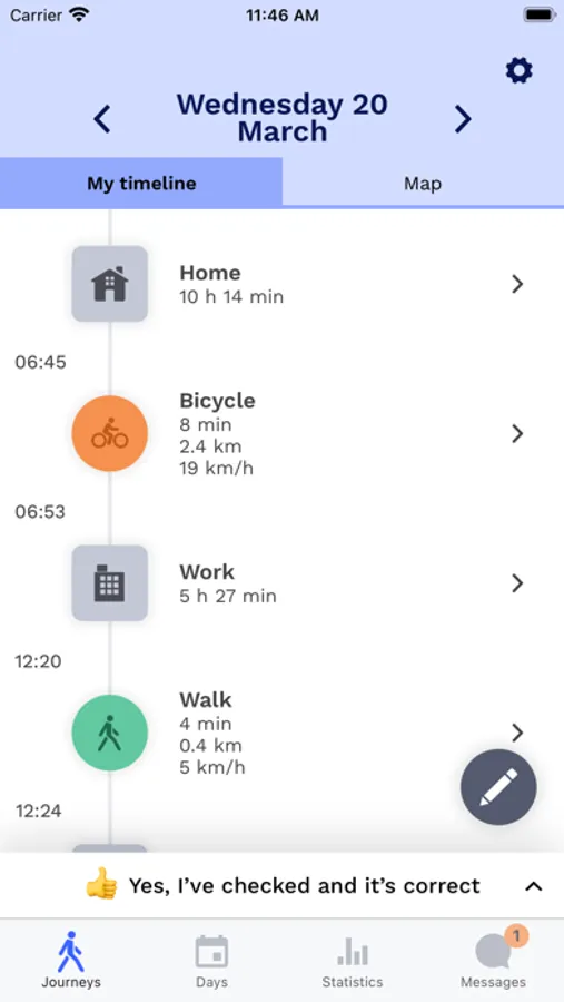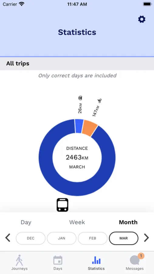 Using TravelVu you can track your daily trips and activities and see summaries of how far and by which mode you've travelled per day, week, and month. The contributed data will help civil planners to create a better transport system.