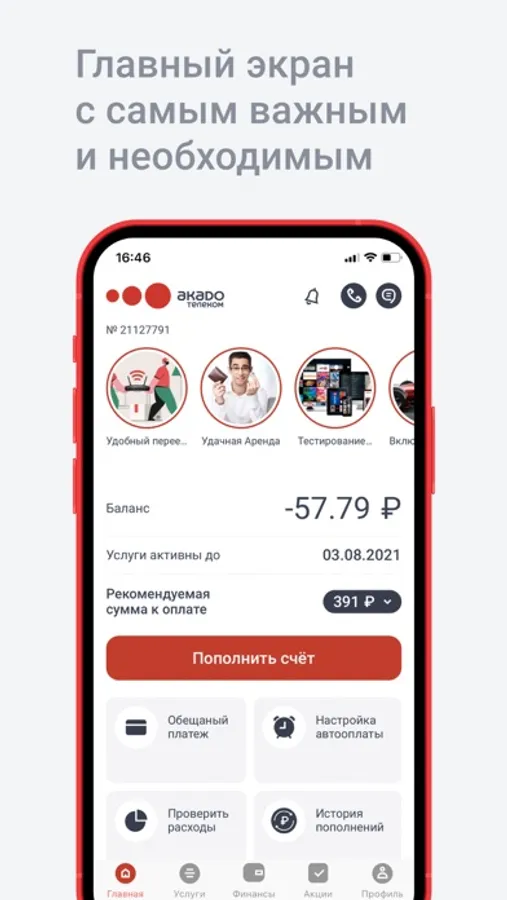 «АКАДО Личный кабинет» – приложение для быстрого доступа к наиболее популярным функциям личного кабинета абонента АКАДО.