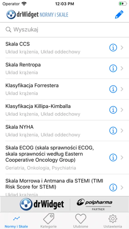 DrWidget Normy i Skale to aplikacja, dzięki której lekarze w każdej chwili mają dostęp do norm i skal medycznych powszechnie stosowanych w medycynie. Przy pomocy tego nowoczesnego narzędzia mobilnego można precyzyjnie ocenić stan pacjenta, by następnie wybrać najlepszą metodę leczenia.