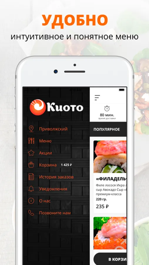 Лучшие роллы в приложении "КИОТО СУШИ" г. Казань! Всегда бесплатная доставка! Мы предлагаем Вам выбор из более чем 200 блюд: пицца, суши, роллы, сеты-ассорти, "ВОК" лапша, салаты, сэндвичи, десерты и напитки! Оформить заказ можно всего в несколько кликов. Также Вас всегда ждут приятные подарки при заказе. Оплата банковской картой через приложение.