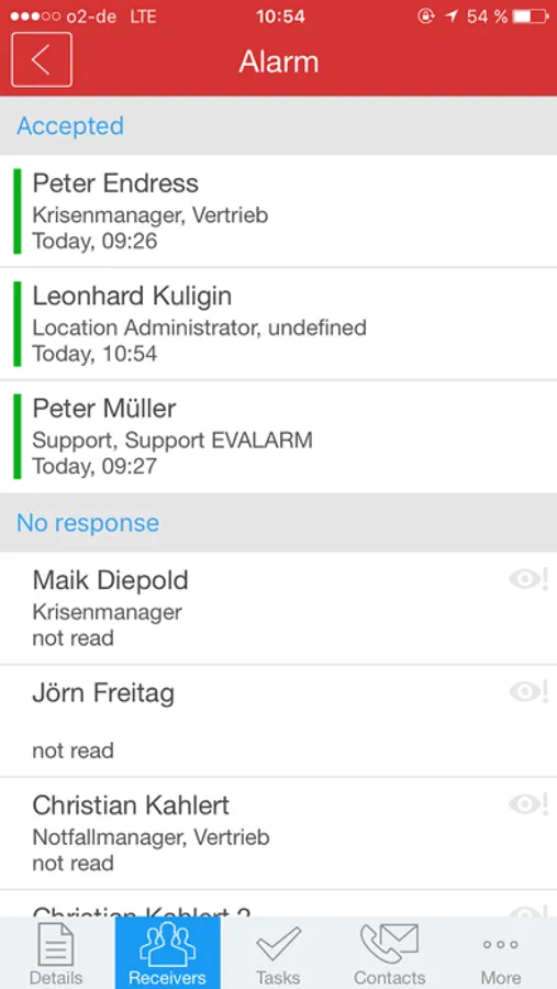 EVALARM is a mobile crisis communication system. When crises develop, the app automatically informs the right group of people and provides them with individual instructions and contact lists.