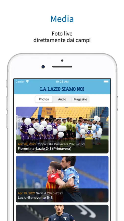 Puoi vedere le foto più belle degli incontri e degli eventi della tua squadra del cuore.