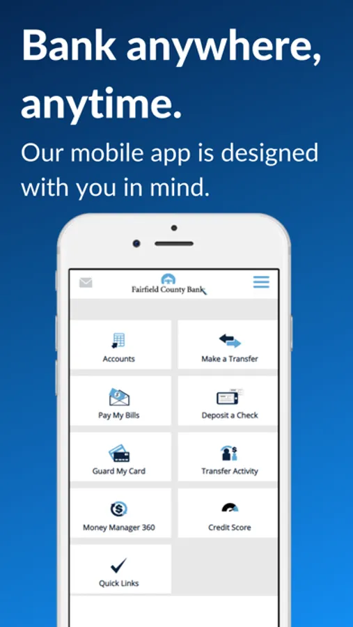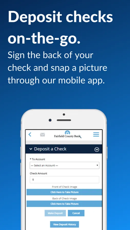 Get 24-hour access to your accounts with Fairfield County Bank Connect24 Mobile Banking. It’s a convenient, safe and secure way to access your accounts, make transfers, pay your bills, and make a deposit to your checking or savings account.