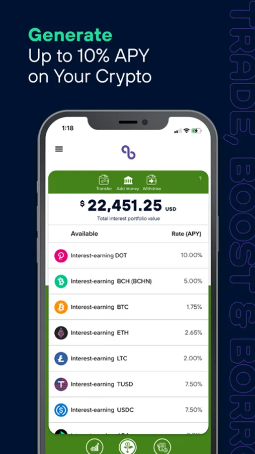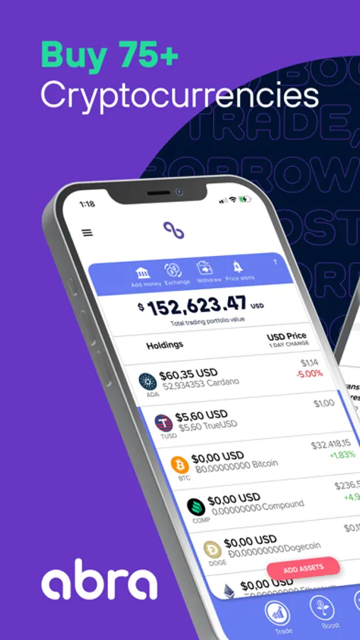 Download the Abra app today to easily and safely buy crypto! As one of the top crypto wallet apps, Abra lets you buy, borrow, and generate interest on cryptocurrencies. Trade Bitcoin, Ethereum, Cardano, Dogecoin, and 75+ other cryptocurrencies. The Abra crypto app is used by more than 2 million people in over 150 countries. Accredited investors can generate up to 10% APY on their crypto with Abra Boost.