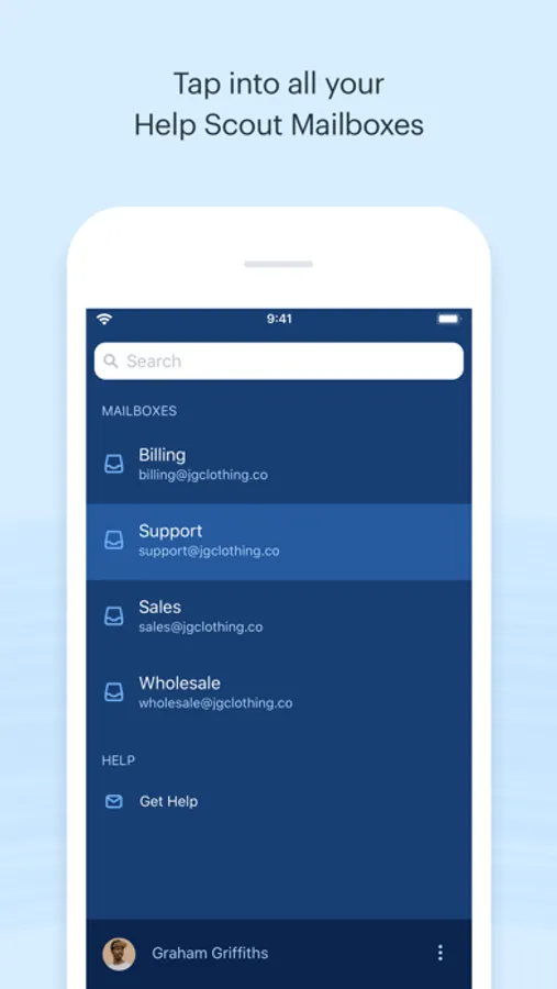 • Navigate to any Help Scout mailbox with a tap