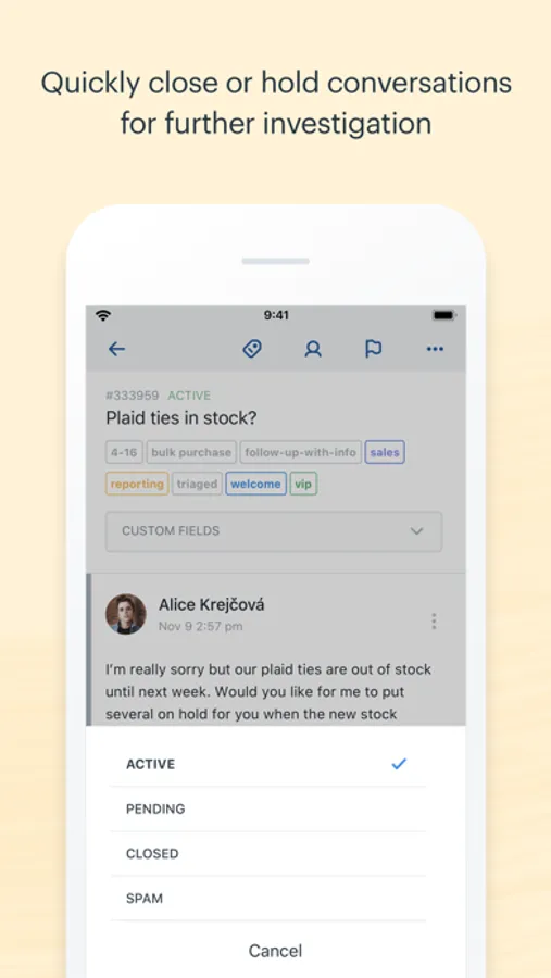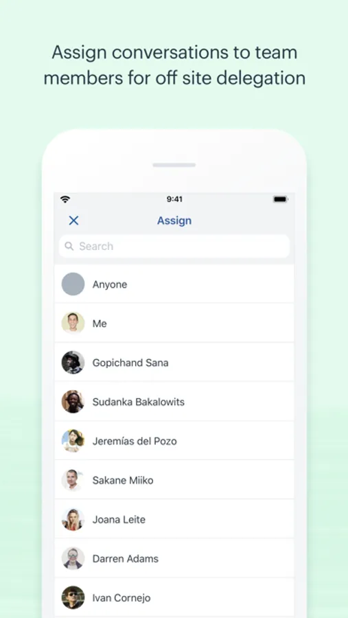 • Keep conversations moving by assigning them to a team member or teams (Plus Plan only)