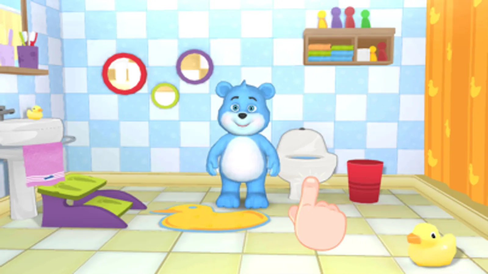 En algún momento mientras el usuario está interactuando en los diferentes escenarios el personaje empezará a dar señales de que tiene ganas de ir al baño, el famiosito generará una alerta pidiéndole al usuario que le ayude a ir hacia el inodoro a través de un toque en la pantalla.