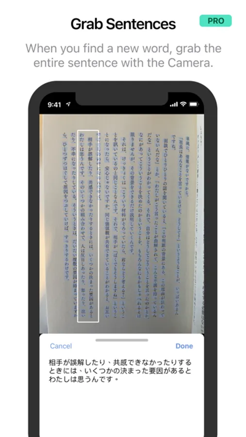When you find a new word, grab the entire sentence. You can paste from another app or use the camera to capture text from anywhere.