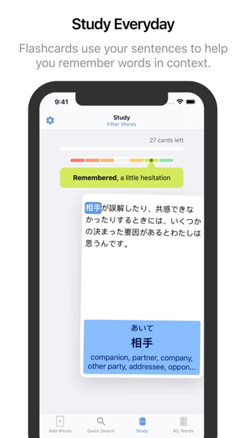 Context helps you build a daily habit around meaningful sentences you encounter through language immersion.