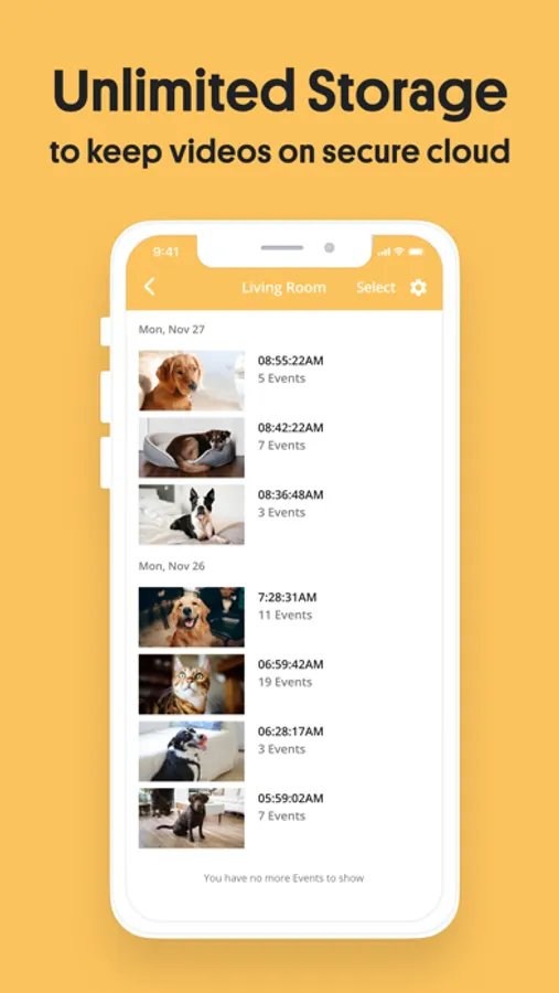 • UNLIMITED CLOUD STORAGE: Playback, download, and share your video footage at any time.