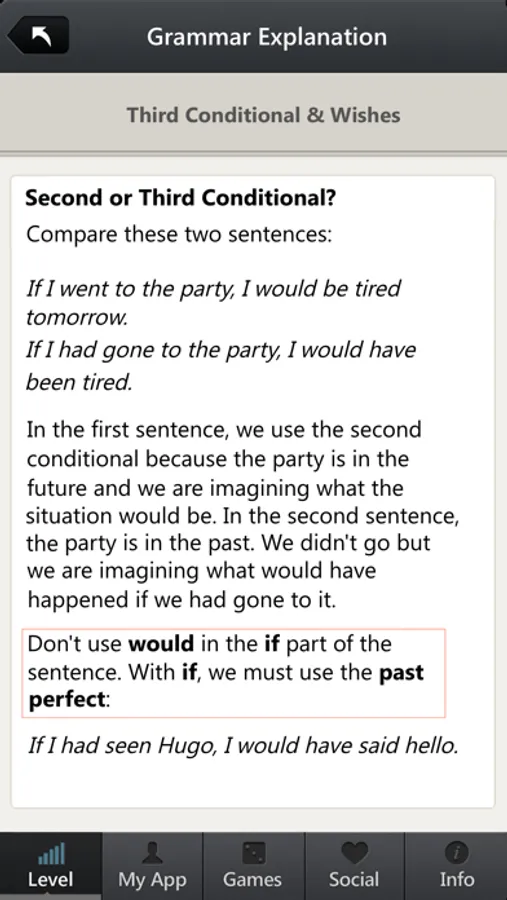 Learn English as you go about your busy day. While other apps only test you, English Learning Lounge gives full explanations of grammar and then checks if you have understood.