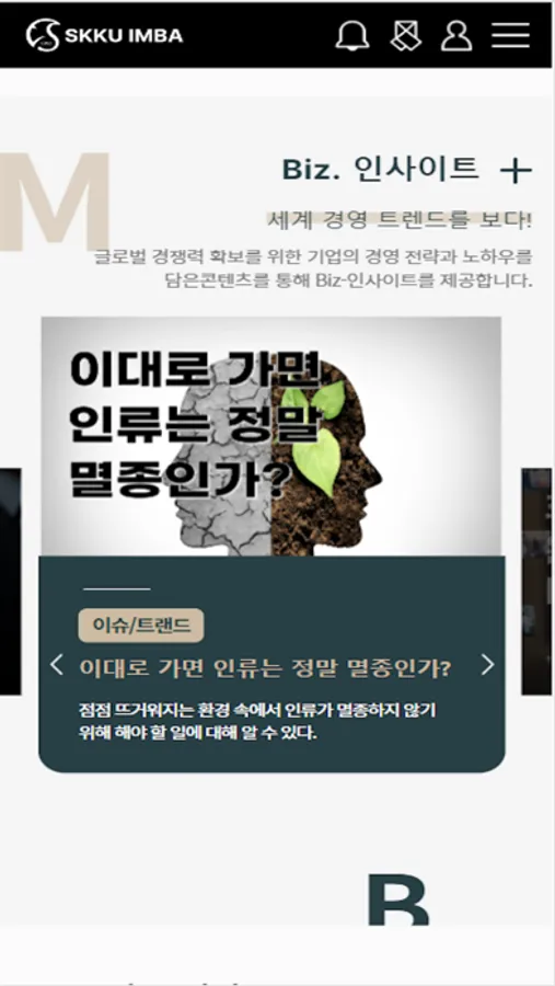 ▶ 대학원 소개 : IMBA의 역사와 특징, 차별화된 World Class 교수진들을 확인하실 수 있습니다.