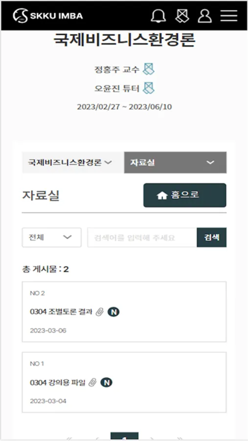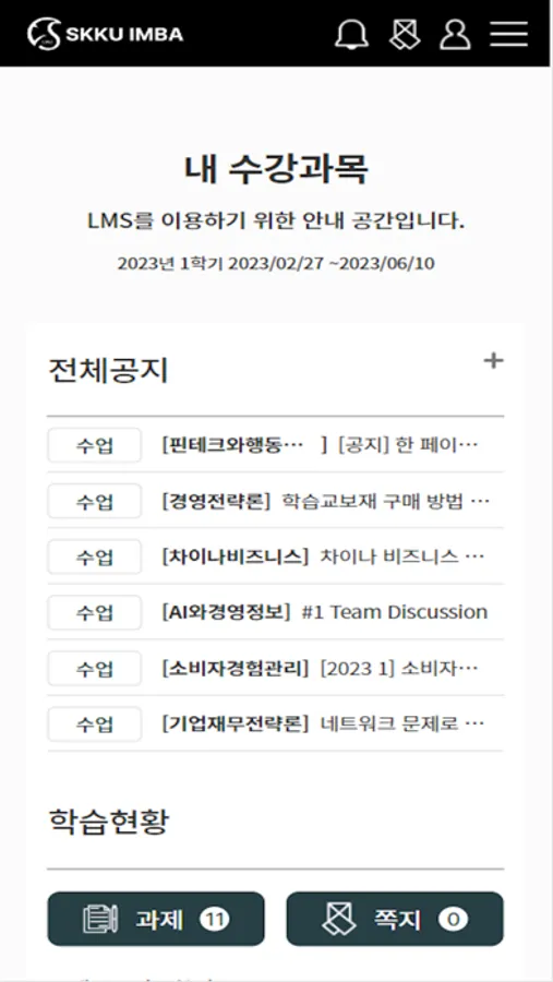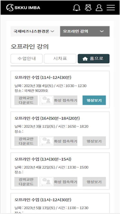▶ IMBA 학생이 아닐 경우 일부 메뉴에서 사용이 제한됩니다.