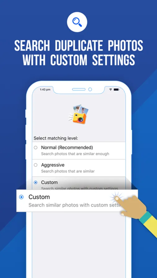 This duplicate photo cleaner provides you with three scan criteria to find duplicate images-