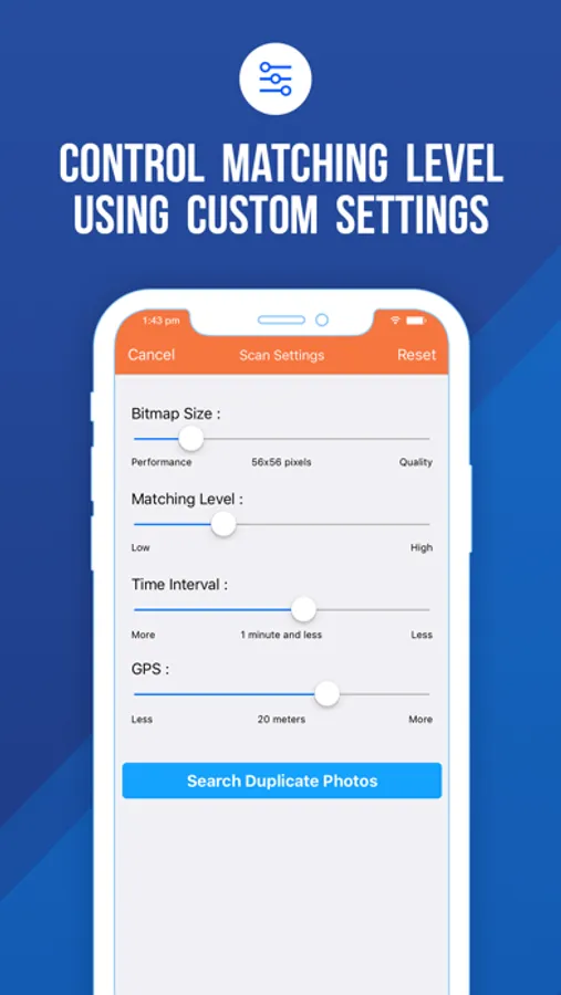 Get customized results with this similar photo cleaner. Set the criteria with these options-