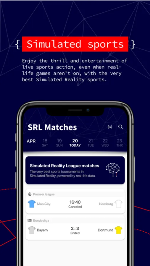 •. Simulated Reality League - Our Simulated Reality League lets you continue to enjoy the excitement of live sports, even when the real games aren’t on. This is your chance to complete the current football seasons of all major competitions in England, Germany and Spain with all remaining fixtures scheduled to be played as per their original date and kick-off time. More sports to come!