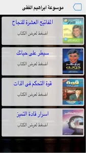 موسوعة الدكتور ابراهيم الفقى تحتوى على مقتطفات مجانية من أشهر كتبة منها (المفاتيح العشرة للنجاح- سيطر على حياتك- قوة التحكم فى الذات- اسرار قادة التميز- بعض أقوال الدكتور إبراهيم الفقى)