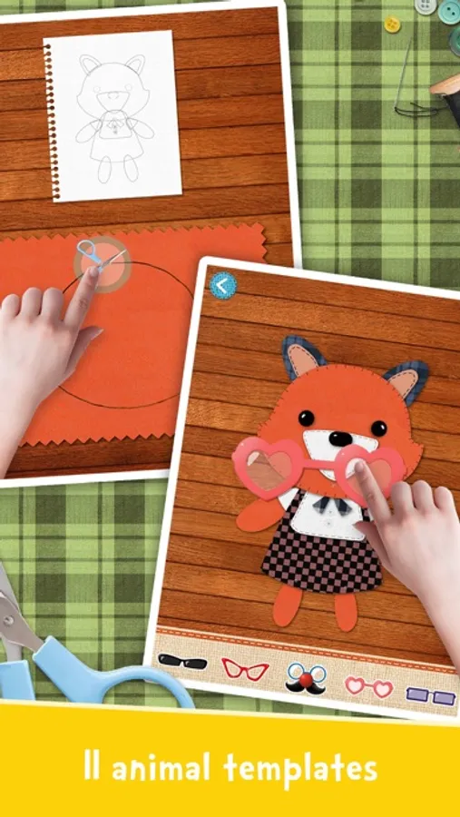 In this app, there are 11 templates guide children using fabric scraps to make adorable animals, and 6 mini games with endless fun.