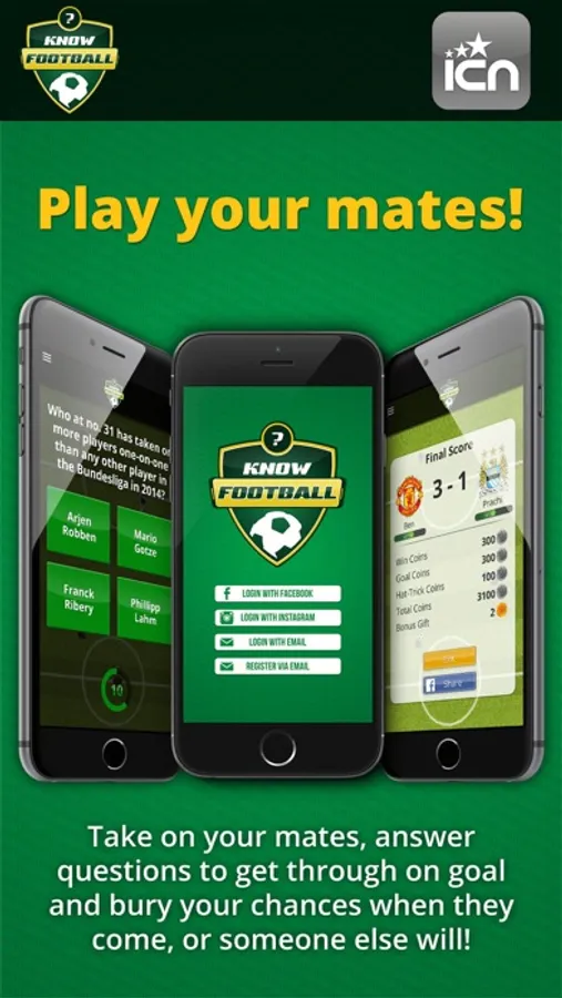 KnowFootball is a football (soccer) trivia app that is free to download and easy to set up. All you have to do is sign in with Facebook and you can instantly play against your friends or even a random opponent if you want to warm up before the big game.