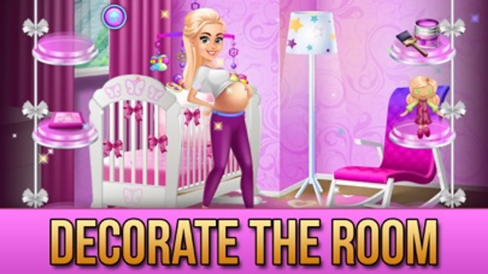 Level 1: Decorate the baby nursery room. Paint the wall and listen to a baby song! Tap the light to turn it On or Off!
