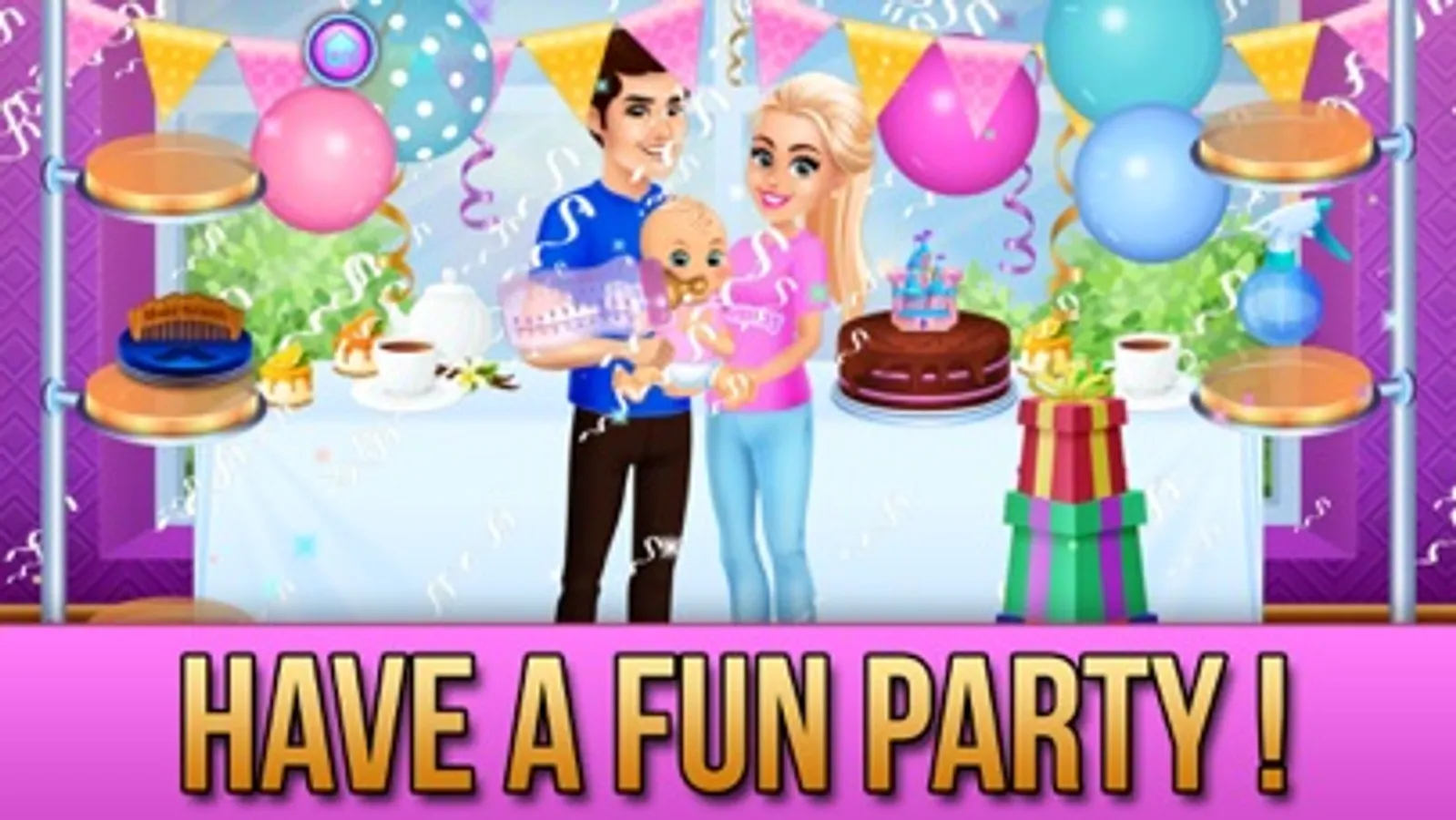 Level 4: Let's have a party! Clean-up messy daddy, decorate the party room and feed the baby!