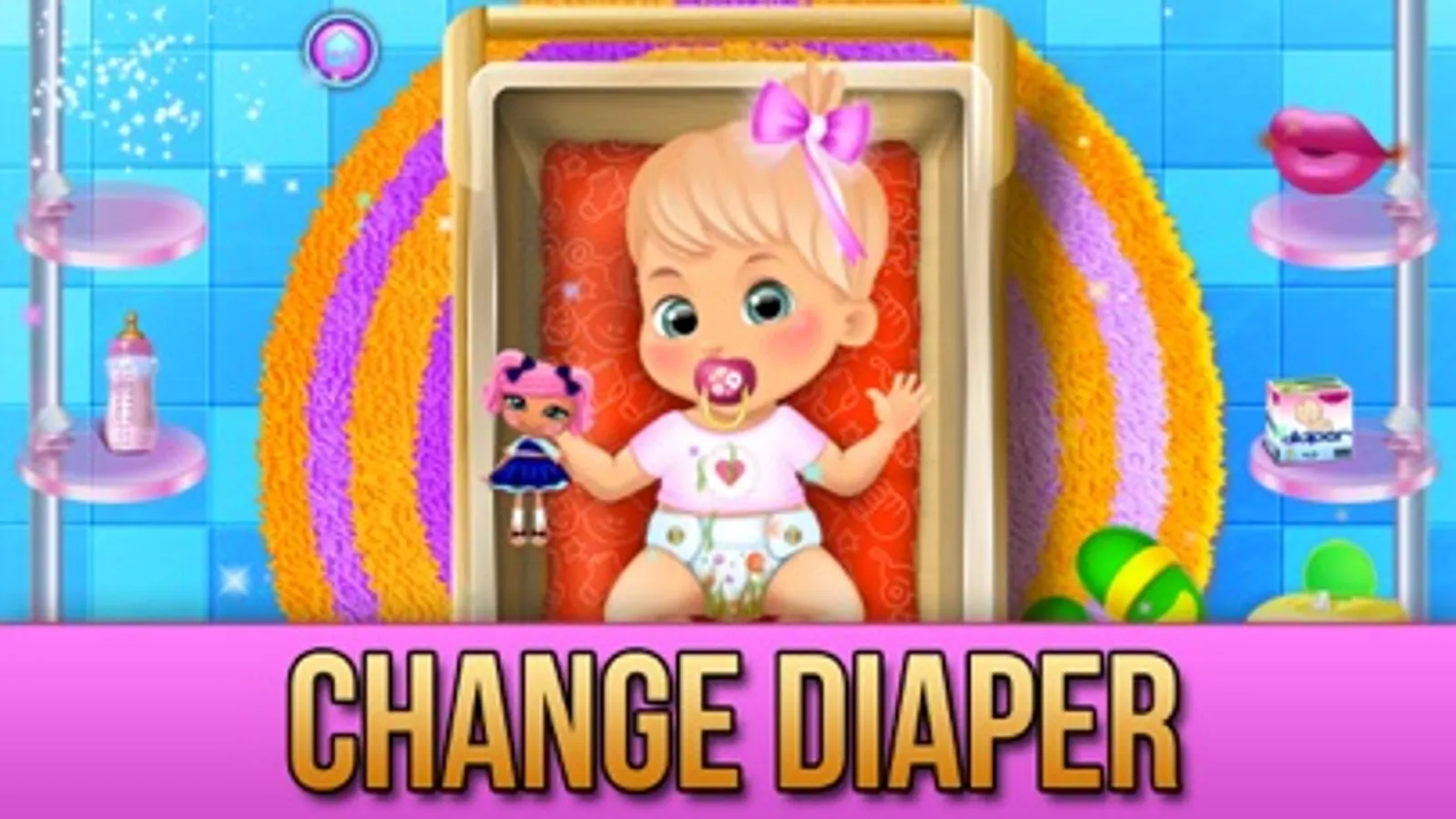 Level 7: The baby needs a diaper change! Then play with the doll and give a milk bottle!