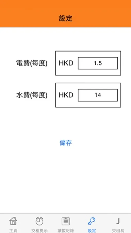 費用設定:租客在主頁計算表中運作前需於此頁輸入水費及電費的每度收費,由於水電費的單位可隨意更改,租客可根據租用該單位的業主或代理人提供水電的每度收費計算,從而計算出正確的水電費用。