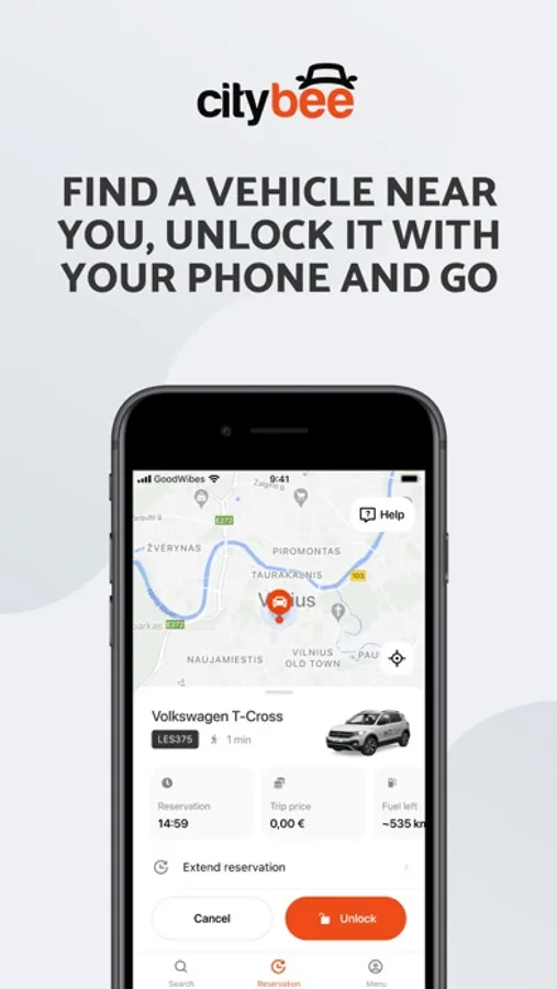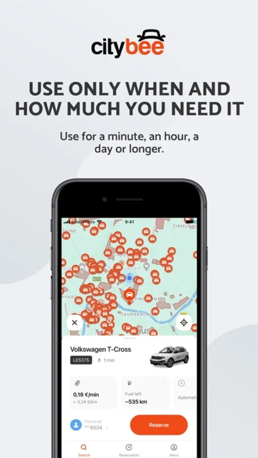 Find a car nearby, unlock it using your phone, travel wherever you want across Baltic countries and leave where convenient in CityBee zones.