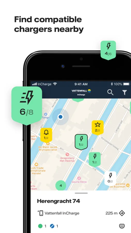 Easily find charging points for electric vehicles with the InCharge app.